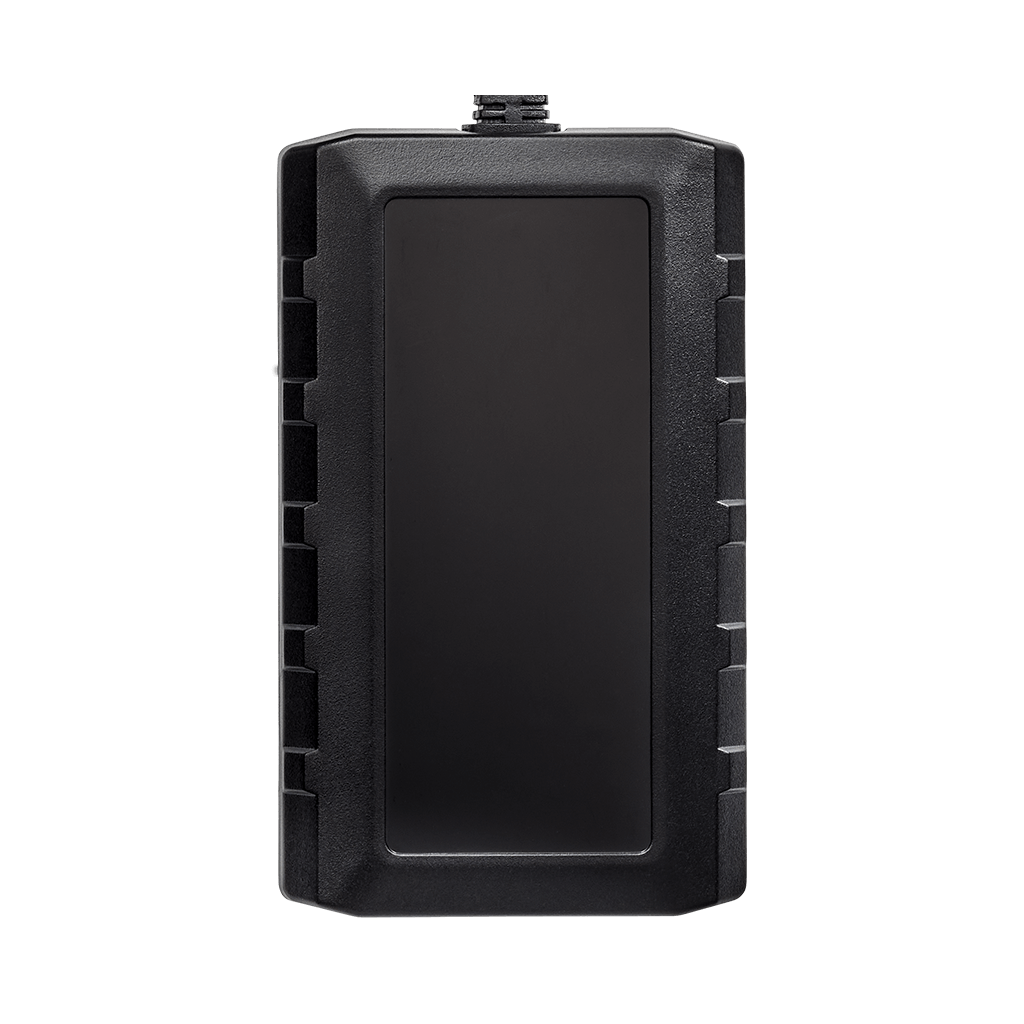 Connect the red wire to constant power (8V–32V) and the black wire to ground. Most installations take 15–20 minutes. The compact size (3.3" x 2" x 0.65") makes it easy to conceal inside equipment panels or housings. Mounting adhesive is included.